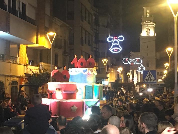 Als carrers per on ja transcorregut la Cavalcada no cabia ni una agulla i és que segur s’han arribat a les 12.000 persones que ixen any rere any a gaudir de l’espectacle, que ha començat puntual i ha recorregut l’avinguda de Pius XII, des d’on la comitiva ha anat cap a la plaça Major per les avingudes de la Murà i Francesc Tàrrega i els carrers d’Ignasi Vergara, Polo de Bernabé, plaça i raval de Sant Pasqual i Major Sant Jaume. Com cada any, els Reis d'Orient han arribat a l'ajuntament, on els esperaven milers de xiquets i la corporació municipal. Com a novetat d’aquest any d’aniversaris, la temàtica la carrossa infantil ha estat caracteritzada amb dues reproduccions de pastissos de gran mida, una amb una vela amb un 90 i altra amb un 100.