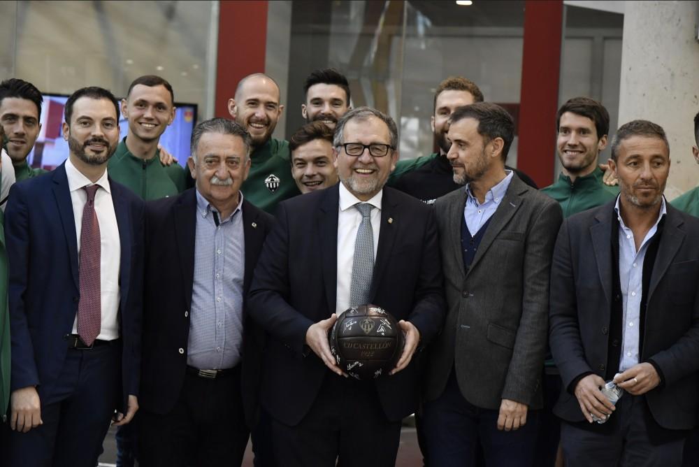 Junto a los jugadores han estado presentes Alfonso Hernández, vicepresidente del CD Castellón; Ángel Dealbert, director deportivo; Pepe Mascarell, director del Área de Negocio, así como Óscar Cano y Elías Martí, entrenador y segundo entrenador, respectivamente. La plantilla le ha dado al presidente un balón firmado por todos los jugadores.