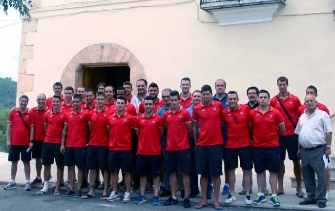 La directiva, cuerpo técnico y la plantilla han acudido hasta la ermita del patrón para realizar la tradicional ofrenda floral ante el inicio de la Liga.