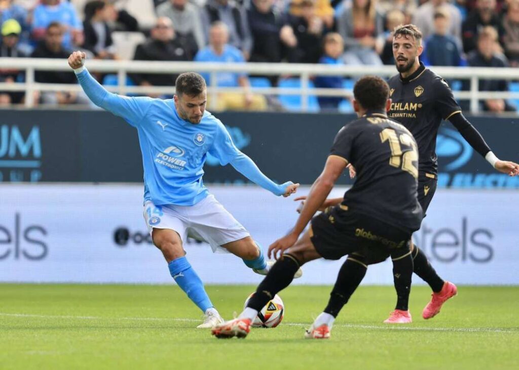 Vaya por delante que el Castellón, se quiera o no, no acabó de ofrecer su mejor versión Empezó controlando el equipo de Dick Schreuder, que dio el primer aviso con un tiro al palo de De Miguel a los ocho minutos. Pero Álex Gallar estuvo a punto de adelantar a los ibicencos con un remate que se estrelló en el palo.