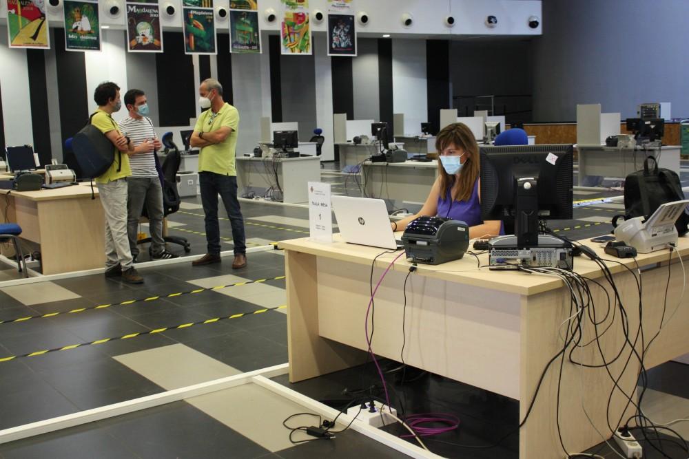 El regidor d'Atenció Ciutadana, Ignasi Garcia, ha supervisat aquest matí les tasques d'organització i muntatge del qual serà el nou centre per a tramitacions de l'Ajuntament de Castelló, al Palau de la Festa. Allí s'han habilitat 34 llocs de treball, encara que existeix marge si és necessari incrementar aquesta xifra.