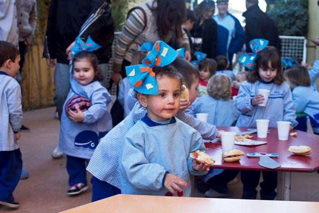 Mentre berenaven, la xicalla del Centre Infantil La Balena cantava la cançó de Sant Nicolau.