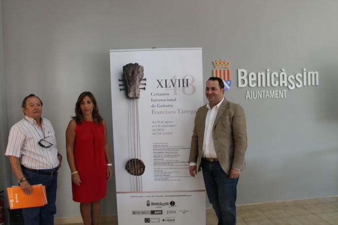 La alcaldesa del Ayuntamiento de Benicàssim, Susana Marqués, junto con el concejal de Cultura, Mauro Soliva, y el director del certamen, Domingo Tárrega, han presentado la cuadragésima octava edición del Certamen Internacional de Guitarra Francisco Tárrega que se celebrará entre los días 29 de agosto y 5 de septiembre.