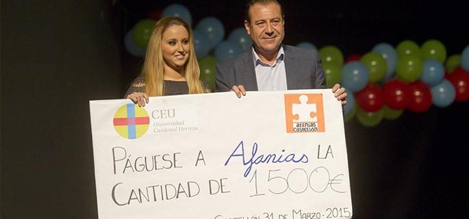Los estudiantes de la Universidad CEU Cardenal Herrera de Castellón han recogido 1.500 euros para Afanias en la gala benéfica que celebraron ayer en el Palau de la Festa de Castellón.