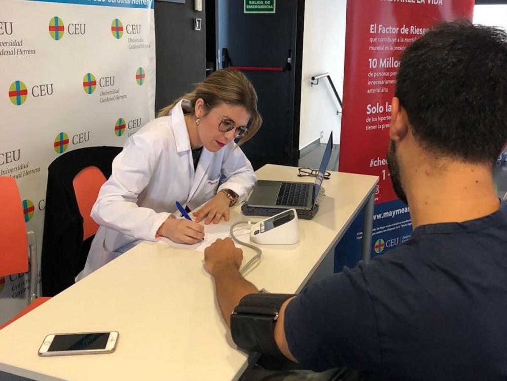 El CEU ha sido la única universidad española que ha colaborado con la International Society of Hypertension en la campaña MMM18, para la detección de casos de hipertensión no diagnosticada. El trabajo se inició en el mes de mayo de este año, dentro de la campaña internacional May Measurement Month, cuando los estudiantes voluntarios de Medicina de la CEU UCH, con la colaboración de compañeros de Farmacia y Enfermería, midieron la presión arterial a 1.009 personas, en los puestos instalados en sus sedes de Castellón y Valencia, en el Hospital de Sagunto, en la plaza Santa Clara de la ciudad de Castellón y en el Mercado Municipal de Moncada (Valencia). Tras el tratamiento y procesamiento de todos los datos, los resultados han sido remitidos a la International Society of Hypertension, para formar parte del estudio a nivel mundial sobre hipertensión que realiza anualmente esta sociedad científica.