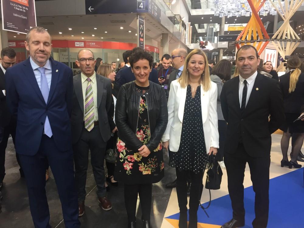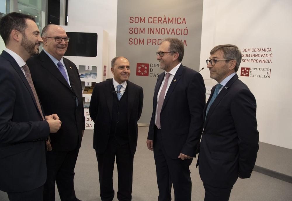 Alcón, junto a los vicerrectores, ha aprovechado para visitar los estands de varias empresas vinculadas a la UJI: Ceracasa, Keraben, Torrecid, Vidres y Zschimmer&Schwarz, y ver las nuevas tendencias del sector.