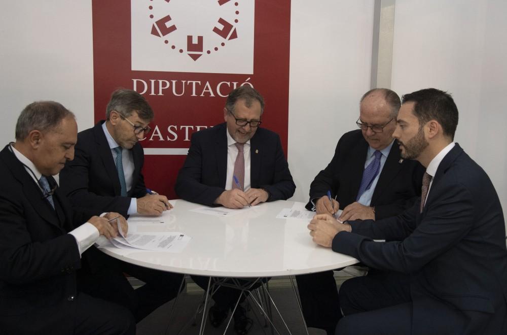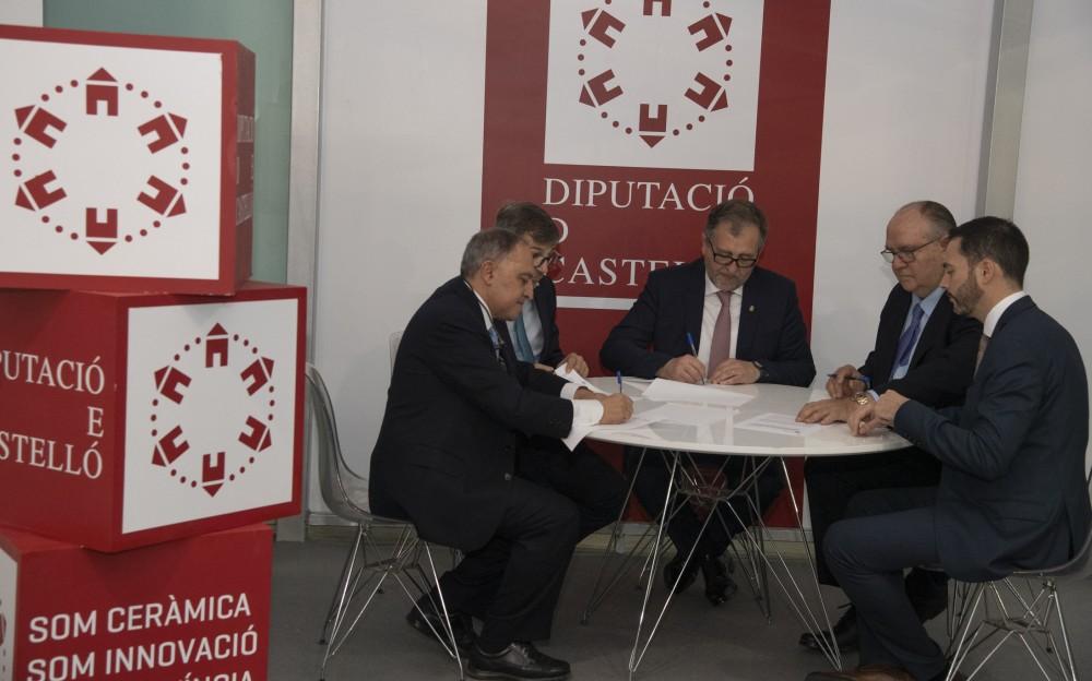 La Diputación de Castellón reafirma su apoyo institucional a la industria azulejera para que continúe ocupando su lugar como líder a nivel mundial en el campo de la innovación cerámica. Con esta finalidad, el presidente de la institución provincial, José Martí, ha firmado hoy a mediodía en la feria Cevisama el convenio que pone las bases del que será el quinto premio 'Som Ceràmica' a la innovación cerámica en aplicaciones urbanas. El acuerdo ha sido subscrito conjuntamente con la Asociación de Investigación de las Industrias Cerámicas (AICE), la Asociación Española de Técnicos Cerámicos (ATC) y la Sociedad Española de Cerámica y Vidrio (SECV). En representación de cada una de ellas han estado presentes sus presidentes, Joaquín Font de Mora, Juan José Montoro i Miguel Campos, respectivamente.