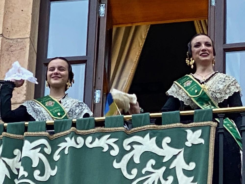 Las reinas subieron al balcón y fueron aclamadas por la multitud. Después, Chema Prades posó con ellas, y se redoblaron los aplausos.