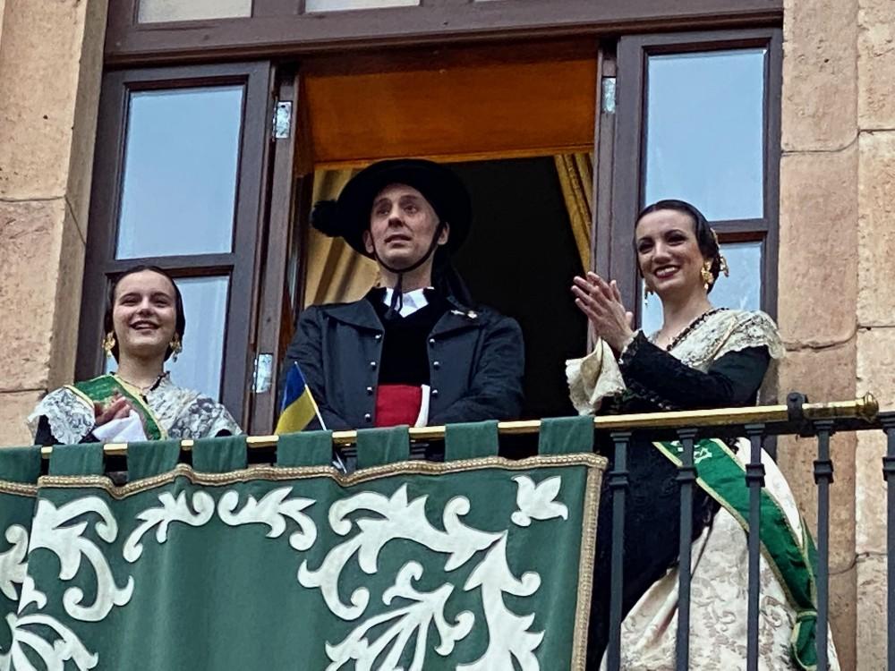 A la hora convenida, Chema Prades salió a la balconada, desde donde dedicó el Pregó a la reina y solicitó el permiso de la alcaldesa.