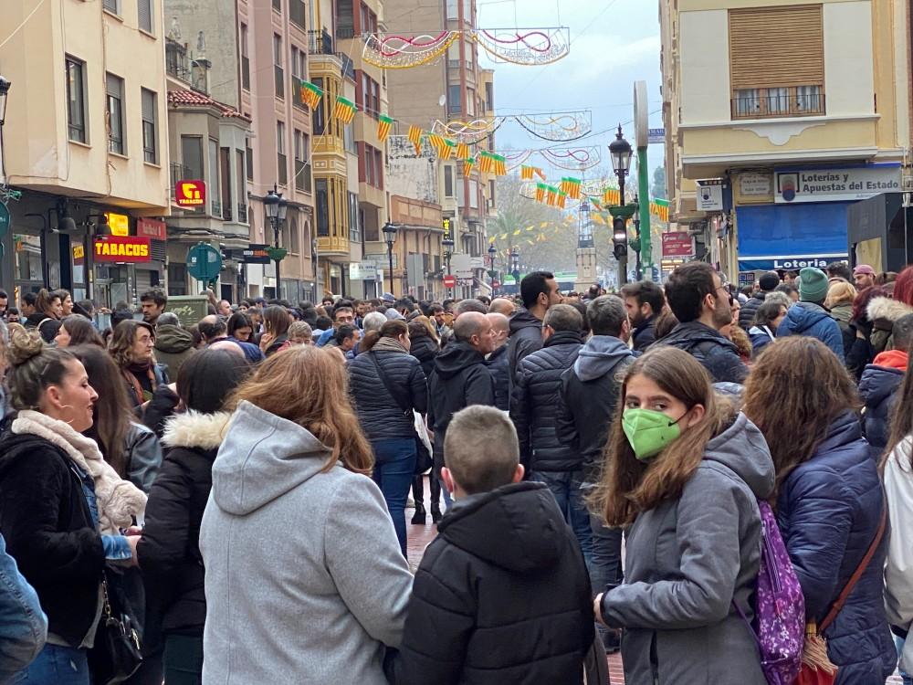 Poco antes de la 18:00 horas, el público ya llenaba todos los espacios de la plaza Mayor para escuchar a su pregonero, Chema Prades, que debía cantarlo desde el balcón del ayuntamiento.