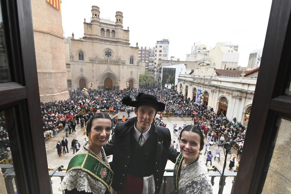 Chema Prades canta el Pregó desde el ayuntamiento y la plaza Mayor se convierte en una gran fiesta