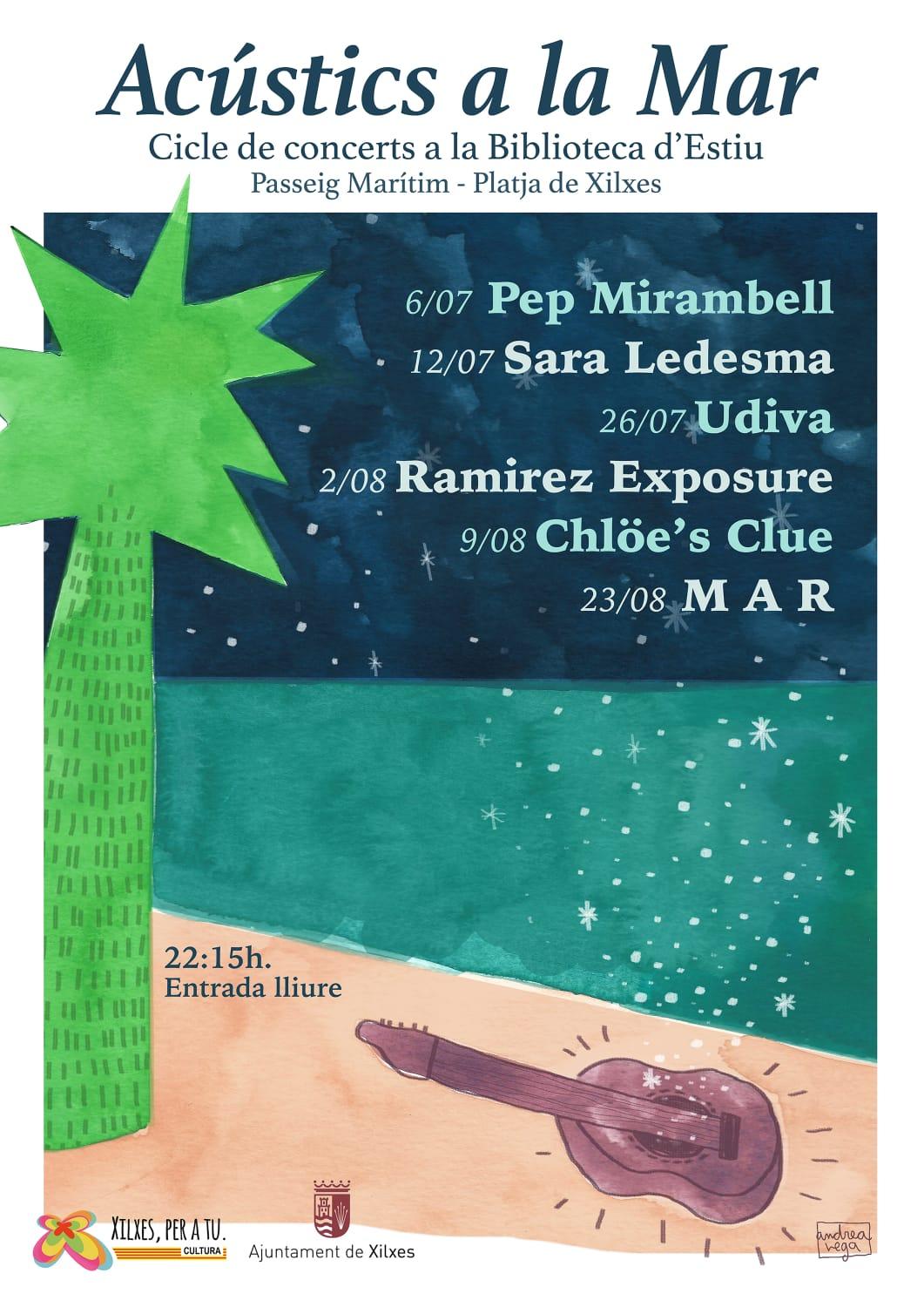 Els sis concerts que conformen el cicle tindran lloc en la terrassa de la Biblioteca de la Platja i arrancaran el 6 de juliol amb el concert del cantautor alacantí Pep Mirabel. Sara Ledesma, Udiva, Chlöe's Clue, Ramirez Exposure i MAR són la resta d'artistes del cartell d'aquest esdeveniment musical, que baixarà el teló a la fi d'agost.