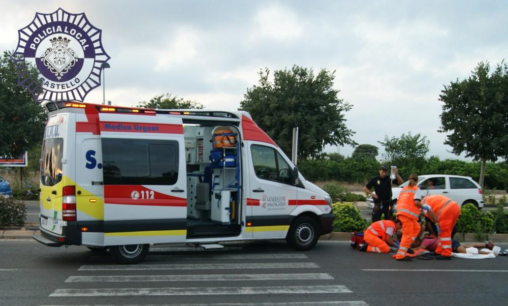 La Policía Local de Castellón junto con una ambulancia y un retén de bomberos han intervenido esta mañana en la Ronda Este a su paso por la avenida Chatellerault en un aparatoso accidente de tráfico en el que han estado implicados un turismo y una bicicleta y ha resultado herido con pronóstico reservado un ciclista. El siniestro se ha producido sobre las 07:50 cuando por causas que está investigando el equipo de Atestados e Investigación de Accidentes, un Ford Focus ha atropellado a un ciclista cuando éste pasaba por un paso de peatones situado en la Ronda Este y como consecuencia de este impacto, el ciclista ha resultado herido en su pierna izquierda.