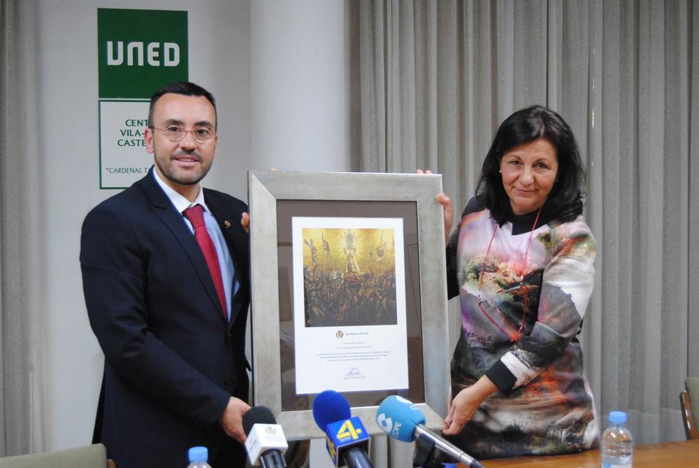 “En un momento en el que lo urgente desplaza demasiadas veces a lo importante, la filosofía, con iniciativas como Conferencias Blancas, se convierte en una herramienta fundamental para abrir un espacio de reflexión que permita el necesario debate local respecto a lo global”, valora Benlloch, quien ha querido agradecer a Andreu y a los estudiantes de Filosofía, el moderador de las ponencias Juan Luis Sánchez o el profesor Amador Antón, fallecido en 2014, “y todos los que han hecho posible este ciclo que llena también de contenido nuestra marca de Ciudad de la Ciencia y la Innovación; porque la universidad, y la UNED es el mejor ejemplo de ello, es innovación, cambio social y progreso”. Por este motivo, el primer edil ha querido reconcer al centro asociado por este aniversario haciéndole entrega, en representación de toda la corporación municipal, de una lámina de la alegoría de la ciudad de Ramón Catalán que decora también la casa consistorial. “Porque la UNED y el ciclo Conferencias Blancas forma parte importantísima de nuestra historia y formará parte también de nuestro futuro”, concluye Benlloch.