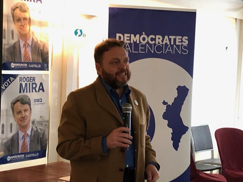 Finalmente a las 19:30, Demòctrates Valencians celebraba su acto. No había mucha gente, es cierto, pero completaban el aforo de una veintena de personas que habían preparado. Acompañado de uno de los candidatos a las europeas, Roger Mira realizaba su discurso, presentado por el abogado García Petit.