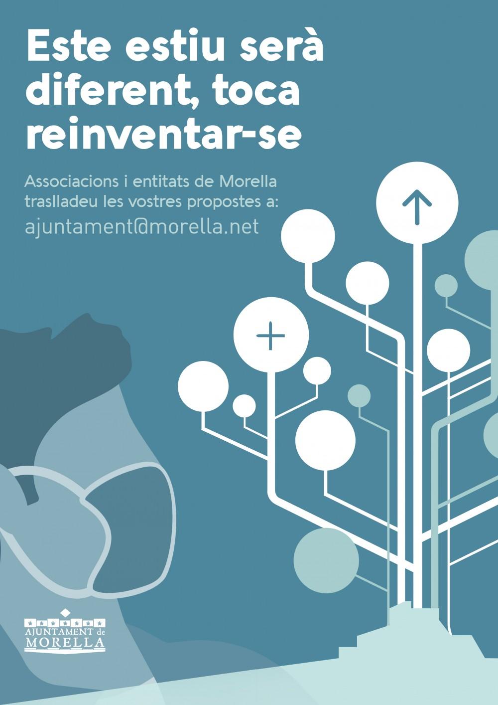 La ciutat continua amb la seua campanya Este estiu serà diferent, toca reinventar-se junt amb les entitats locals i les associacions. Així, amb la participació ciutadana es pretén omplir d’activitats el mes d’agost i que l’entreteniment de totes i tots siga possible durant l’estiu. Cal recordar que es poden traslladar les diferents propostes a través del correu electrònic ajuntament@morella.net.