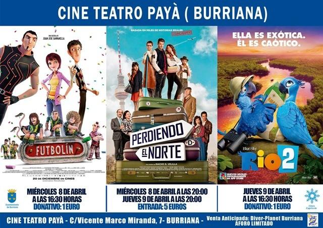 Las concejalías de Cultura y Turismo del Ayuntamiento de Burriana, con motivo de las vacaciones de Pascua, han programado para mañana miércoles y el jueves varias proyecciones de cine en el Teatro Payá, tanto para público infantil/familiar como para adultos.