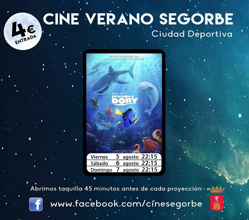 Este fin de semana, con la película de dibujos animados 'Buscando a Dory', comienza el ciclo de cine de verano en Segorbe, impulsado por la Concejalía de Cultura del Ayuntamiento de Segorbe. El filme se exhibirá en la Ciudad Deportiva a las 22:15.