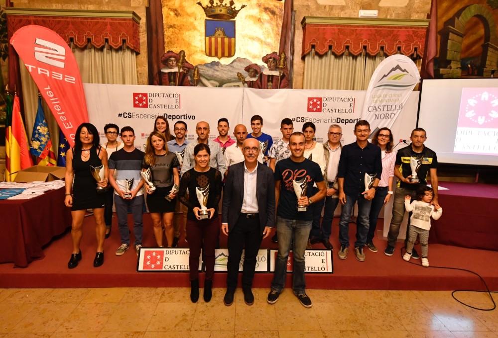 Un repleto Salón de Recepciones de la Diputación de Castellón ha acogido esta tarde la clausura de la IX Lliga de Curses per Muntanya Castelló Nord que ha recabado la participación de 4.879 corredores en sus siete carreras de montaña. José Ángel Ebrí, Miguel Ángel Duplas y Álvaro Ribera en la categoría masculina absoluta y Sonia Mundina, Diana Martorell y Eva Bellés en la femenina absoluta han recibido sus trofeos.El diputado provincial de Deportes, Luis Martínez, ha destacado "el enorme potencial que ya ha demostrado este circuito ya consolidado en el descubrimiento de los municipios del interior como el mejor escenario deportivo de montaña, con un impacto turístico para los pueblos estimado en más de 100.000 euros"