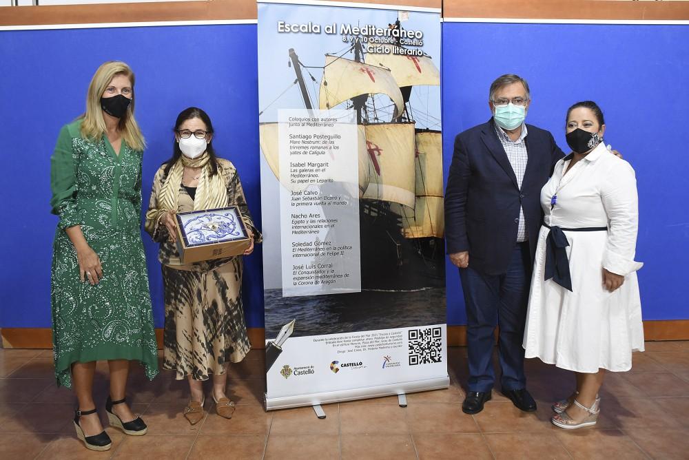 Escala al Mediterráneo comenzó el pasado viernes, con las intervenciones de Isabel Margarit, que centraba su exposición sobre la importancia que llegaron a tener las galeras en el Mediterráneo. a continuación, fue Santiago Posteguillo, el que se remontó a los tiempos del imperio romano, para comentar las estrategias militares del imperio en el mar.