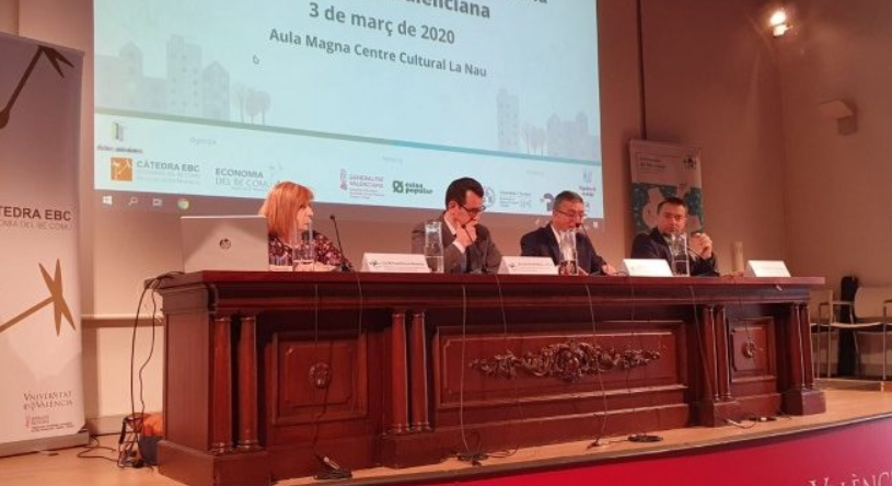 El evento ha contado con la participación, junto al conseller, del vicerrector de la Universitat de València, Jorge Hermosilla; del director de la Cátedra Economía del Bien Común, Joan Sanchis; de la presidenta de la Asociación Valenciana para el fomento de la Economía del Bien Común, Pilar Rueda, y del director de Responsabilidad Social de Caixa Popular, Francesc Alòs.