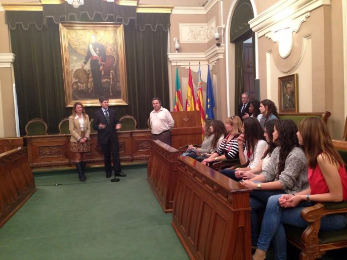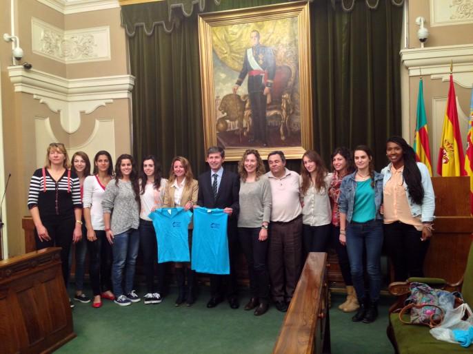 Las chicas del Club Grau Castelló fueron recibidas esta mañana por el alcalde de Castellón, Alfonso Bataller, y la concejal de Deportes, Begoña Carrasco, en el salón de plenos del Ayuntamiento. Estaban acompañadas por el presidente del club, José Miguel Varella.