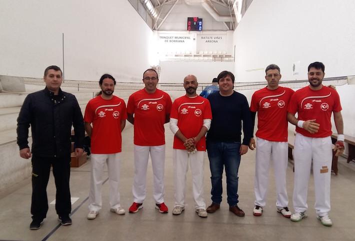 L'equip està format per integrants del Club de Pilota Valenciana, Juan, el president, al costat de Juanjo, Óscar, Guillem, i Cristian, encara que aquest últim no va poder jugar a la partida d'estrena. El debut al trinquet borrianenc es va saldar amb una victòria in extremis, després d'una gran remuntada contra l'equip de Montcada.