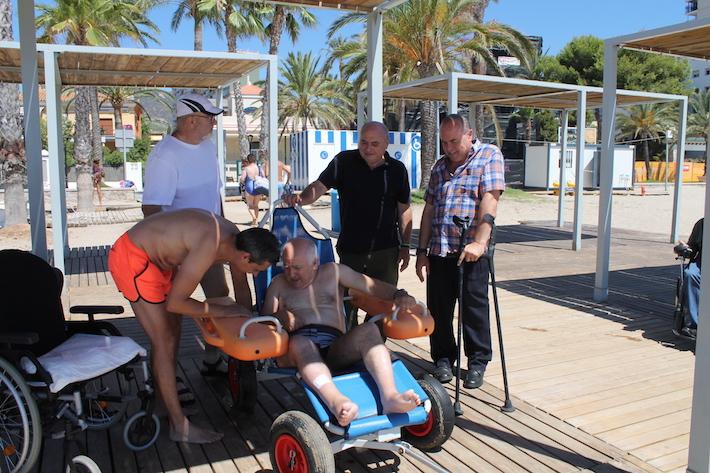 20170704_playas accesibles2Benicàssim cuenta este año con puntos accesibles en las playas de Voramar, Almadraba, Torre Sant Vicent y Heliópolis, cada uno de los puntos tiene instalados módulos de especial atención para personas con discapacidad motora.