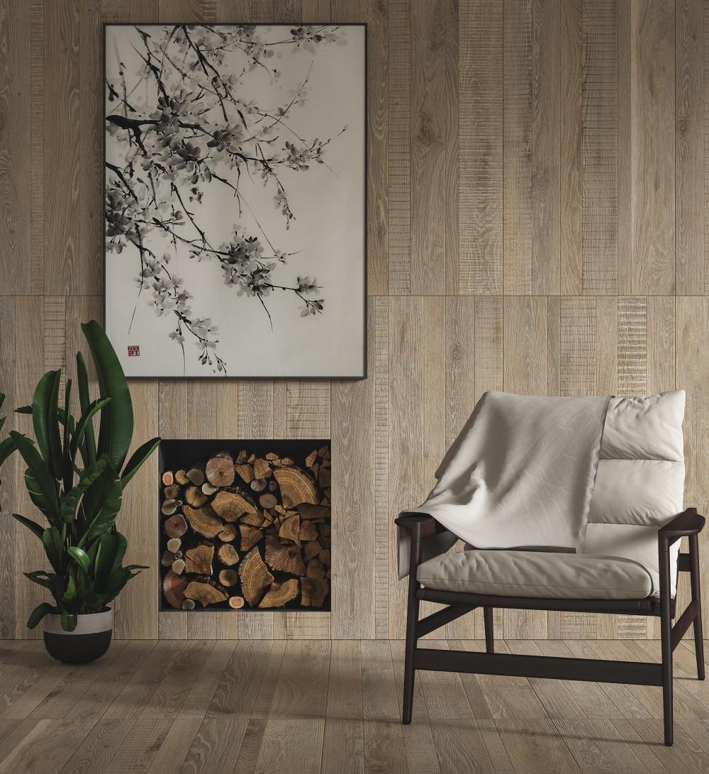 Reconocida por la originalidad y variedad en sus maderas, Gayafores presenta Belzside, una colección multiformato compuesta por tablillas anchas y estrechas con sutiles detalles y mezcla de texturas. Destacan las marcas transversales de corte de sierra entremezcladas con listones de vetas longitudinales como resultado de un exquisito ejercicio de artesanía que da lugar a una madera elegante y natural al mismo tiempo.