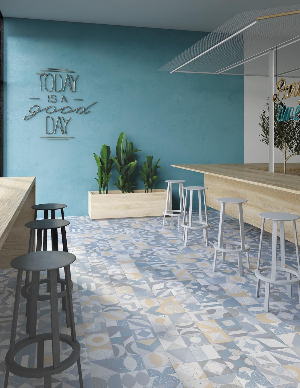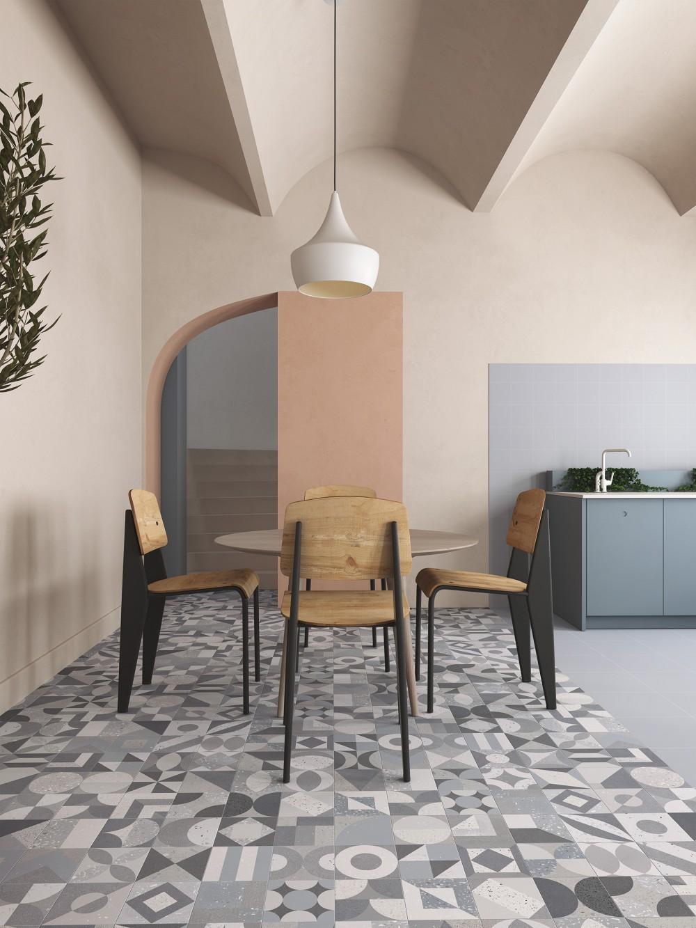 La serie Lumier, novedad de esta feria, recupera el protagonismo de las baldosas hidráulicas artesanales como elemento decorativo en lo que supone una evolución de la reconocida serie Heritage con un patrón de mayor tamaño y estilo diferente pero conservando la pasión por la tradición, la geometría y el color.
