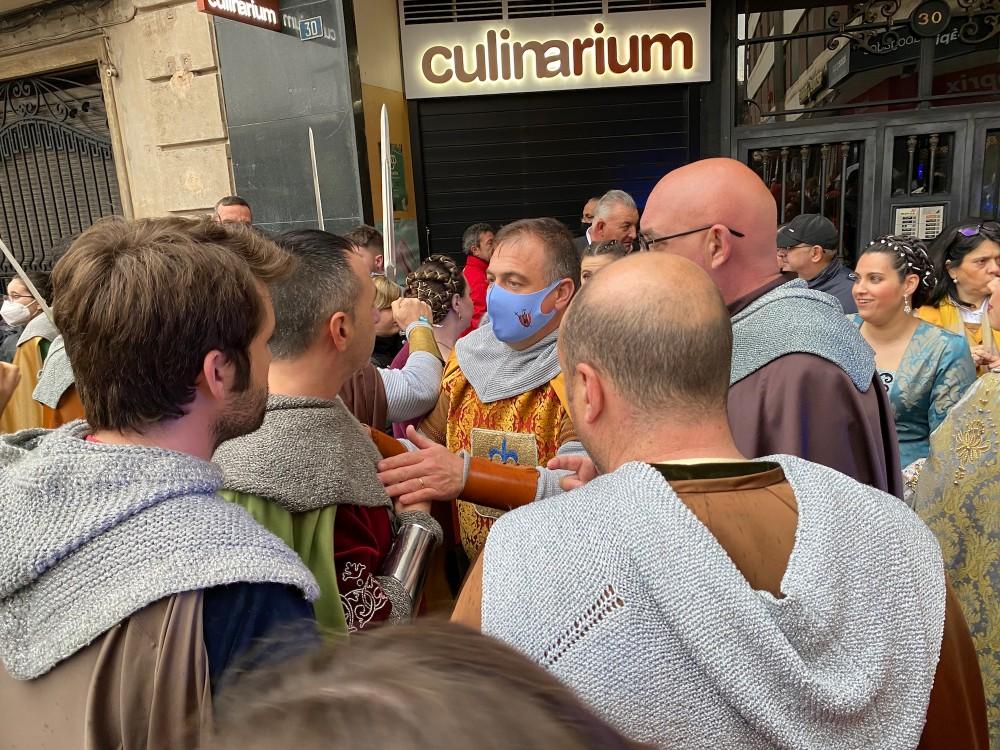 Cuando ya estaban de desfile, en la calle Mayor, la Policía Local les ha indicado que no tenían permiso y que no podían cortar las calles. Los grupos se han dispersado, pero la Colla Bacalao, acompañada de una Batukada ha decidido seguir con su plan original por la calle Escultor Viciano, con los integrantes de la representación de la Todolella.