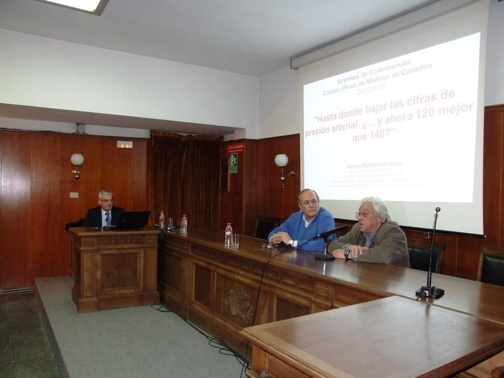 El Colegio de Médicos de Castellón a través de su Fundación puso en marcha ayer un nuevo foro de debate sobre temas de actualidad sanitaria. Así, bajo el título de "Controversias" se irán abordando temas de actualidad. El primero de estos debates trató de la presión arterial, con el especialista en medicina familiar y comunitaria y vocal en Castellón de la Junta del Instituto Médico Valenciano, Vicente Pallarés Carratalá como ponente, que fue presentado por el catedrático de la UJI Juan Vicente Sánchez, miembro de la Junta de Gobierno del Colegio, y el presidente de la institución, José Antonio Herranz.