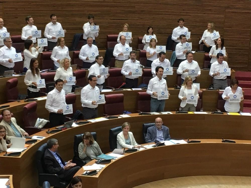 Por su parte, los grupos parlamentarios populares del Congreso, Senado, Parlamento Europeo y Corts Valencianas han reivindicado esta mañana 'Libertad educativa' en la Comunitat Valenciana posando con ese lema en cada una de sus sedes institucionales con el objetivo de "hacer viral" la reivindicación del derecho a los padres a la libre elección de centro educativo que se está viendo amenazada en la Comunitat Valenciana por la supresión de conciertos por parte de la Generalitat. A esta iniciativa se han sumado miles de simpatizantes en las redes sociales.