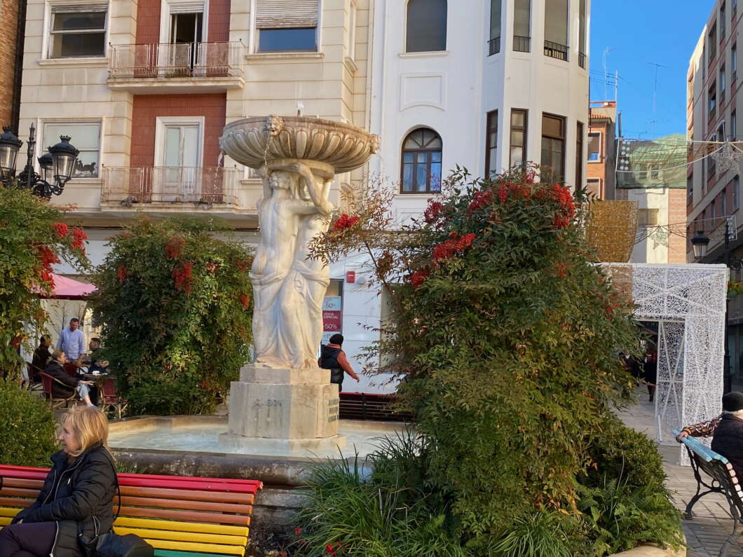 La escultura data del año 1935, y es de Juan Adsuara. Las plantas llegaron mucho después.