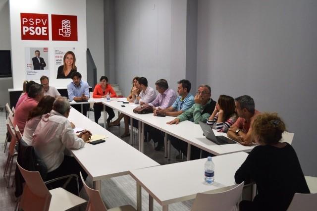 REUNIÓN PSPV 27-05-2015 (1)Además, ha resaltado que “desde el PSOE se entiende que las listas más votadas del progresismo, de la izquierda, de la alternativa ha de tener un papel especial desde el punto de vista de las alcaldías y, obviamente de la Presidencia de la Generalitat”. Por ello, “los socialistas estamos a disposición de lo que en estos momentos se debe hacer como es hablar, concentrarse en los programas, en el contenido y en el fondo de lo que significará una etapa de regenerar las instituciones y llevar a cabo unas políticas que conlleven el cambio en el modelo productivo, en el sistema económico que podemos transformar para lograr una sociedad más igualitaria y avanzar en algo que es fundamental para los socialistas como es la igualdad entre personas y territorios porque hay mucho que equilibrar”. Por tanto, para Colomer, “es la hora de la política en mayúsculas encaminada a rescatar a las personas, y aquí, indudablemente, el PSOE jugará un papel crucial”.