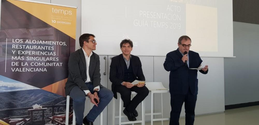 Francesc Colomer ha presentado junto al presidente de la asociación Temps, Joaquín Deusdad, la nueva edición de la guía 'Temps 2019', una publicación que recoge la oferta de turismo rural más singular de la Comunitat Valenciana con un total de 65 establecimientos de interior.