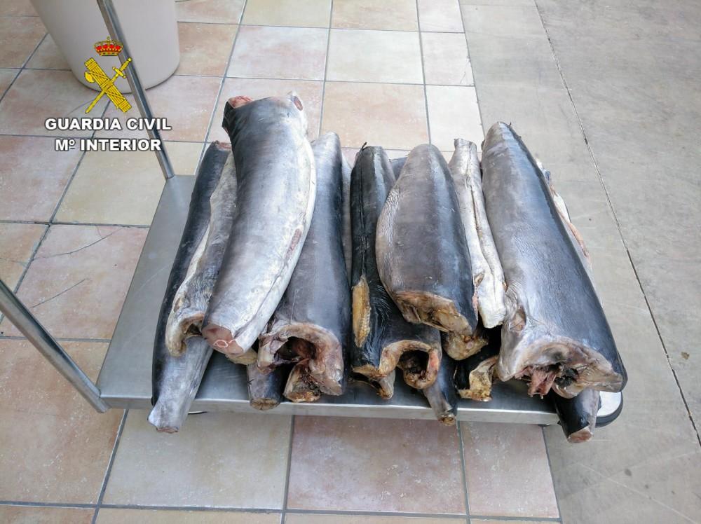 Los guardias civiles realizaron varias inspecciónes en dos embarcaciones profesionales de pesca, incautando un total de 12 piezas de pez espada con la cabeza y cola cortada, de talla inferior a la comercializable, cuyo peso total ascendía a 50.38 kilogramos.