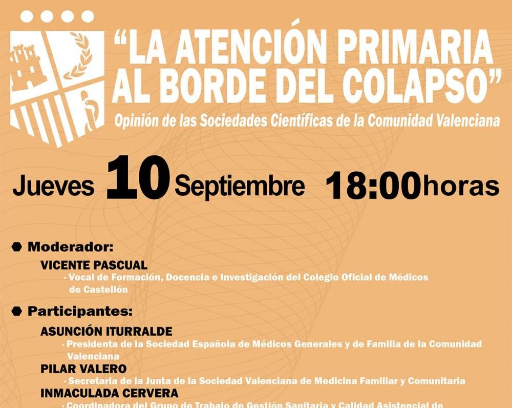 El Colegio de Médicos de Castellón (COMCAS) organiza mañana jueves, a las 18 horas, un debate telemático sobre la situación de la sanidad: “La Atención Primaria al borde del colapso. Opinión de las sociedades científicas de la Comunitat Valenciana”. El objetivo es poner sobre la mesa los problemas de la Primaria, de su modelo, y buscar soluciones. El debate será moderado por el doctor Vicente Pascual, Vocal de Formación del COMCAS.