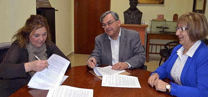 El alcalde, José Ramón Calpe y la responsable de la Asociación Proyecto Solidario de Burriana, María Dolores Peris -acompañados por la concejal de Servicios Sociales, Mercedes Giménez-, han suscrito hoy el primer convenio entre el Ayuntamiento y la entidad, que lleva aparejado una subvención municipal de 3.000 euros para el comedor social de la ciudad.