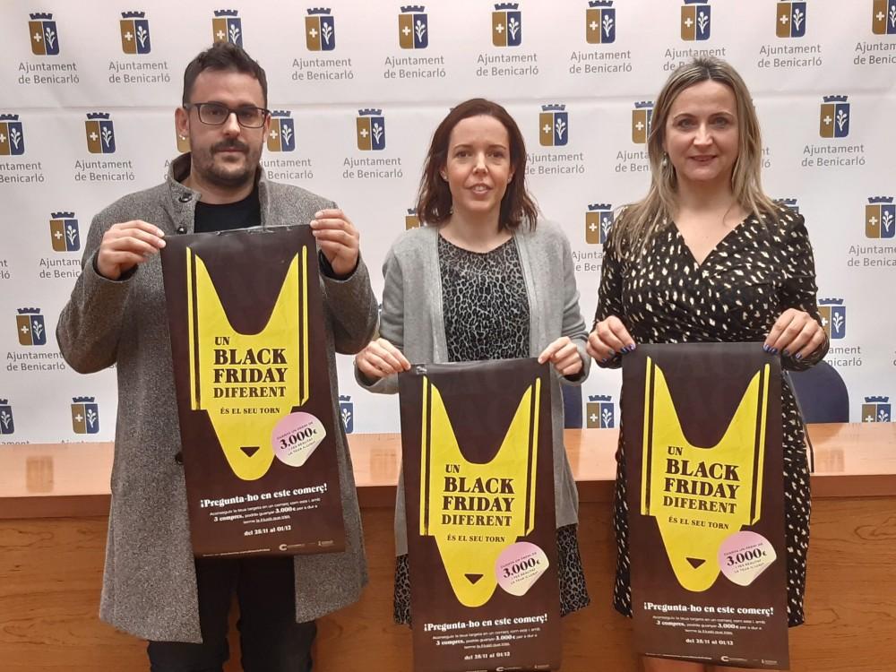 La regidora de Comerç, Clara Cid, i el president de la Unió de Comerços de Benicarló, Adrián Palacio, han presentat aquest matí la promoció «Un Black Friday diferent», amb la qual es pretén aprofitar aquesta reconeguda promoció global per tal d'impulsar el xicotet comerç local. En aquest sentit, la regidora ha declarat que «tenim molts comerços de proximitat que donen vida als carrers i aposten per productes locals i els hem d'aprofitar».
