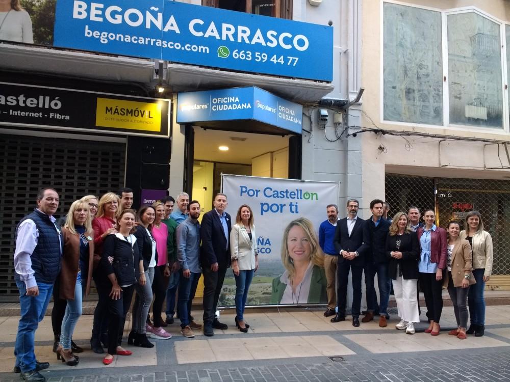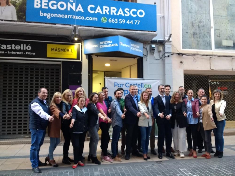 En Castellón, la candidatura del Partido Popular, liderado por Begoña Carrasco, con todos los miembros de su candidatura han descubierto el cartel dando a conocer el lema elegido para la ocasión, ‘Por Castellón por ti’ en un acto celebrado en la Oficina de Atención Ciudadana de la calle Mayor, con la que dan comienzo a la campaña electoral de las elecciones municipales del 26 de mayo.