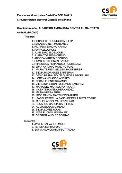 1: Partido Animalista Contra El Maltrato Animal (PACMA), liderada por: Elisabeth Rodrigo Barreda.