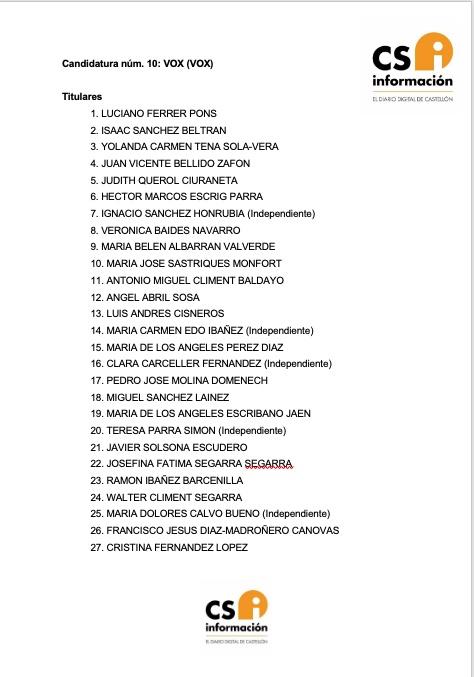 10: VOX (VOX), liderada por Luciano Ferrer Pons.