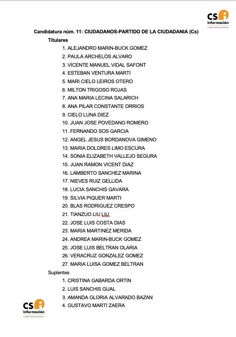 11: Ciudadanos-Partido de la Ciudadania (Cs), liderada por Alejandro Marin-Buck Gomez.