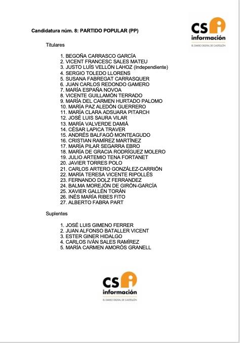8: Partido Popular (PP), liderada por: Begoña Carrasco García.