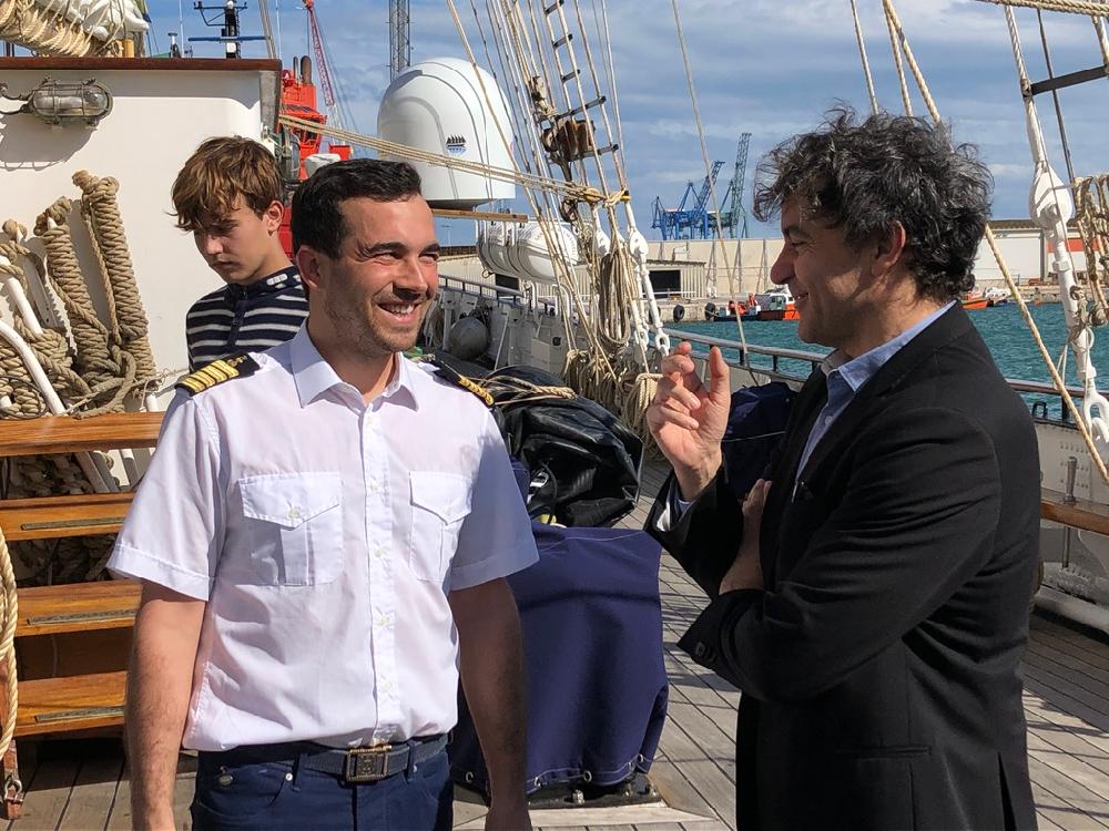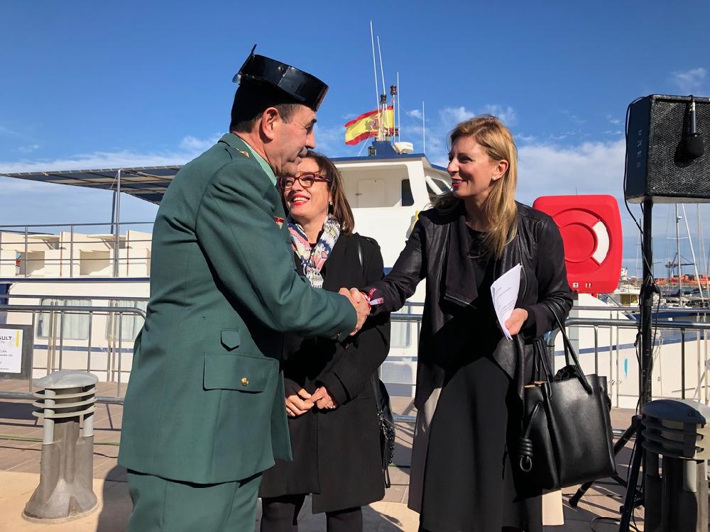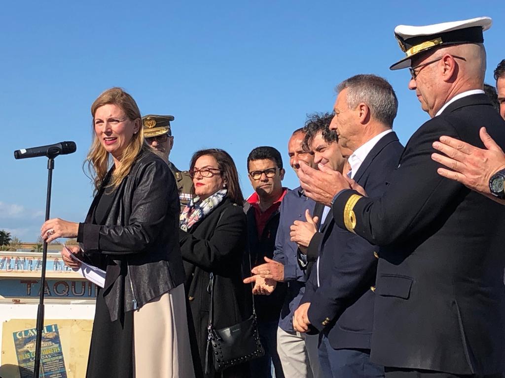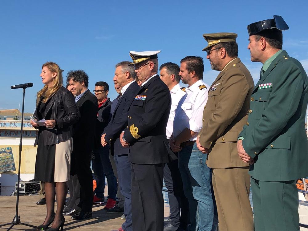 La alcaldesa de Castellón, Amparo Marco, acompañada por Francés Colomer, de la Agencia Valenciana de Turismo, el presidente de la autoridad Portuaria, Francisco Toledo, el organizador de Escala a Sète, el capitán del Santa María Manuela y las autoridades, han dado la bienvenida al evento de 2019.