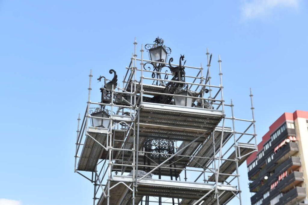 Con todo, este jueves por fin se han iniciado las tareas de reforma de este emblema de la capital de La Plana que está previsto que se prolonguen, como máximo, cuatro meses y medio, a contar desde la firma del acta de replanteo que se firmó el 10 de julio. Con un importe de 81.721,68 euros, las tareas consisten en la restauración completa de la estructura y la reposición del farol que arrancó el viento hace ahora más de dos años.