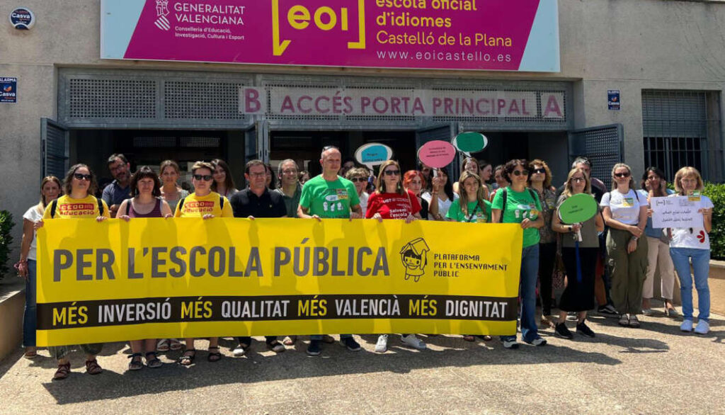 El portavoz en la Diputación de Castelló, David Guardiola, y el portavoz de Compromís por Castelló, Ignasi García, han estado apoyando al profesorado y alumnado de la Escola Oficial d'Idiomes por "los recortes que quiere implantar el gobierno de la derecha y la extrema derecha en la formación de nuestra ciudadanía. De nuestros vecinos y vecinas que tenían un servicio de formación al alcance, y que ahora será eliminado porque no interesa, y porque ahora las prioridades han cambiado".