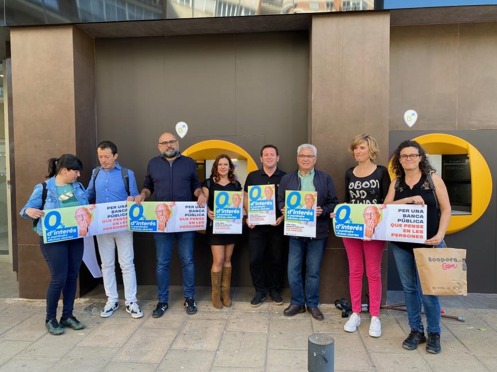 Les oficines bancàries del centre de Castelló han acollit hui el tret d'eixida de la campanya ‘Zero d’Interès’ amb la qual Compromís pretén denunciar “la disminució de serveis bancaris per a usuaris malgrat els guanys de la banca i els seus directius”, així com donar a conéixer la proposta de la coalició per a implementar una banca pública.