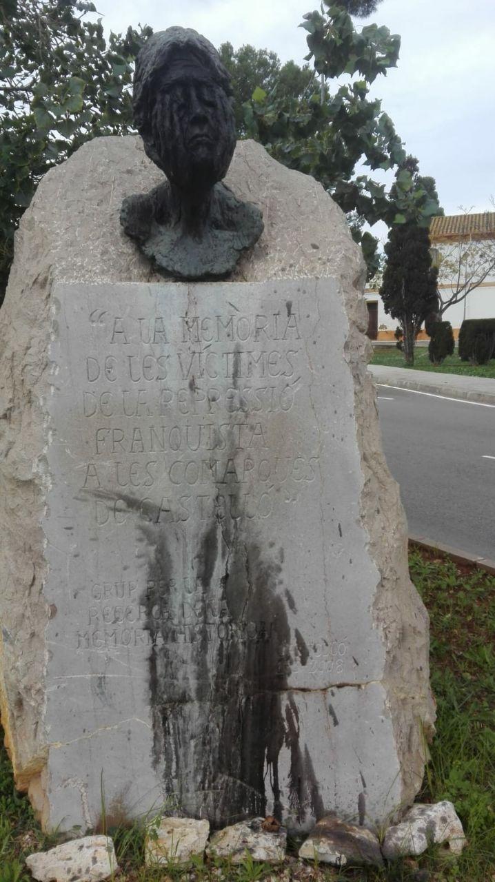 Compromís ha condemnat l'atac feixista que ha sofrit el monòlit en memòria de les víctimes del franquisme, la matinada del 20 al 21 de novembre. El monument ha aparegut tacat amb pintura negra cobrint la inscripció tallada en la pedra, realitzada pel Grup per la Recerca de la Memòria Històrica. El portaveu de la formació, Ignasi Garcia, ha volgut mostrar la seua repulsa enfront de l'atac feixista a "un monument que representa el record a les víctimes de la dictadura".